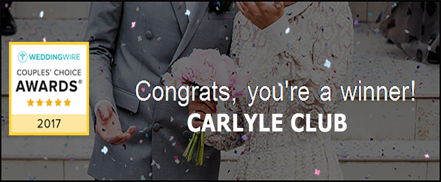 As the consecutive recipient of Wedding Wire Couples' Choice Awards 2013 - 2017, and The Knot Best of Weddings award 2013, the Carlyle Club is recognized for venue ambiance, outstanding service, food, value in pricing, and convenient location. The Club is among the top 5% of wedding professionals on WeddingWire, which honors our exemplary work and highly regarded reputation we've established with our clients. Brides and grooms consistently rate the Club with high overall ratings (a 4.9 for Wedding Wire and 5.0 for The Knot). Whether planning a low-key wedding that is fun and relaxed or a formal affair with valet parking and horse-drawn carriages to the partner hotel, the Carlyle Club will exceed expectations. A tremendous savings for couples planning a wedding, all of the packages listed below include 30 complimentary items/services.